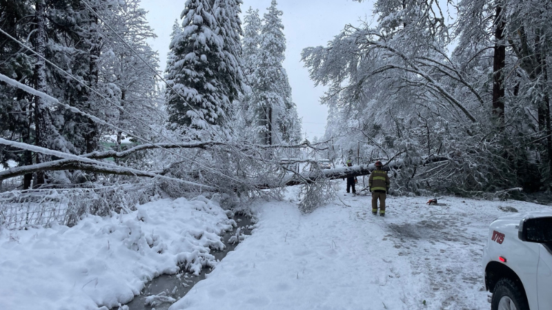 Winter can bring high winds, snow and ice. If a power line comes down in a storm, stay at least 35 feet away and call 911.