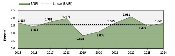 SAIFI is the number of times the average Pacific Power customer experiences a sustained outage in a given year. In 2024, our SAIFI was 1.648.