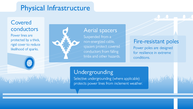 We’re taking actions to enhance reliability and reduce the risk of equipment-related wildfires. These steps include replacing overhead power lines in areas with higher wildfire risk with fire-resistant infrastructure, such as covered conductor, and burying lines underground in some areas.